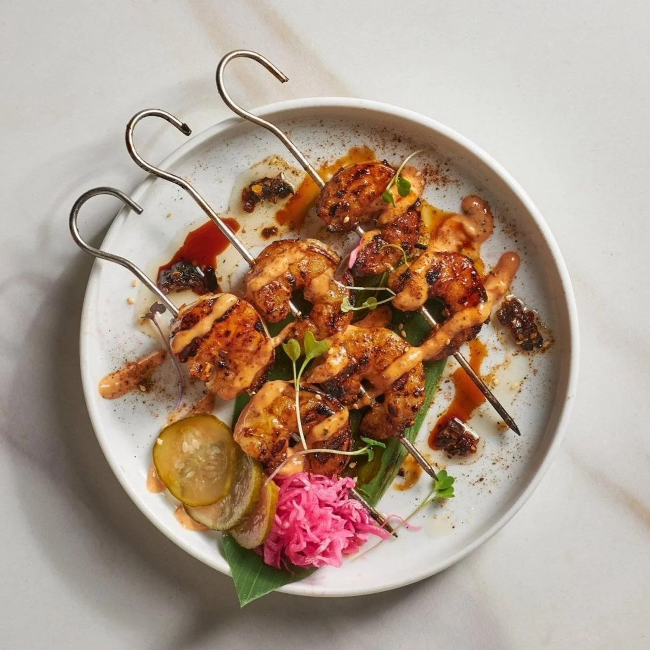 SHRIMP CHILI OILGrilled Shrimps with Homemade Chili Oil, Red Dressing & Asian Salt. 440 EGP